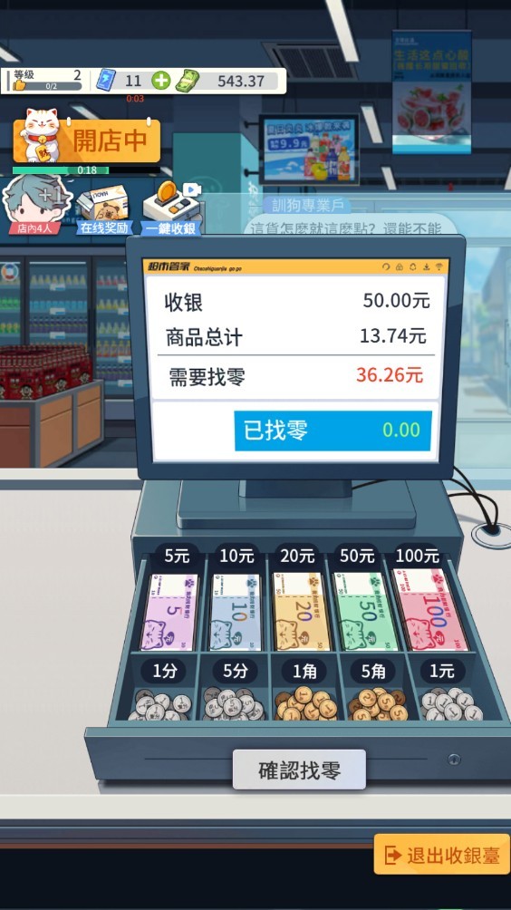 7、游戏中有着多种付款方式,如银行卡、扫码支付、现金等等,其中现金需要手动找零哦!