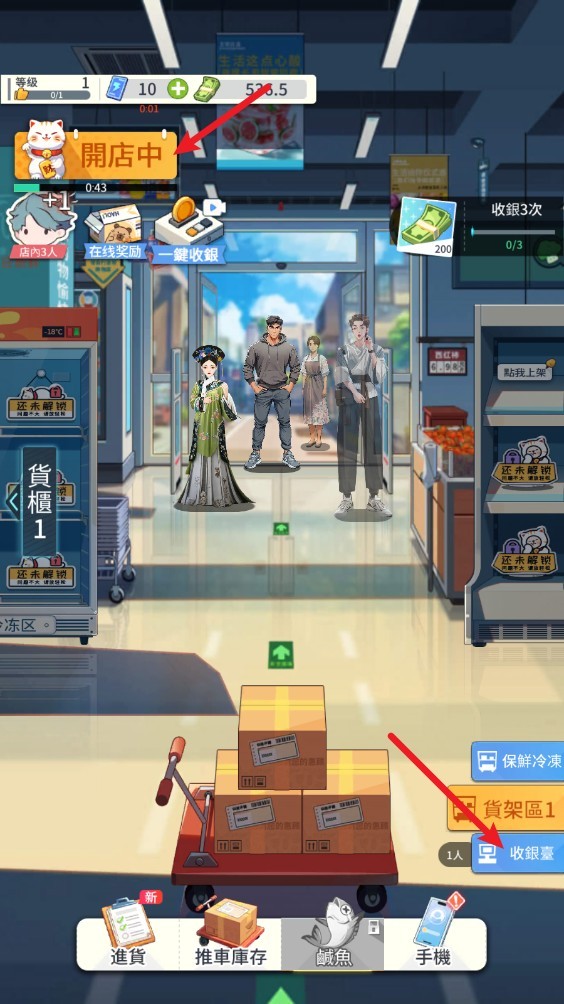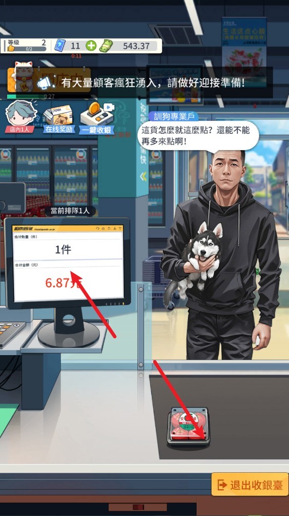 5、在正式开启经营后,右下角的收银台就会显示需要收银的客人。