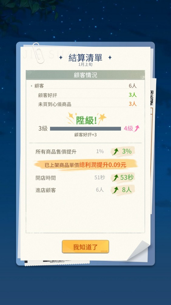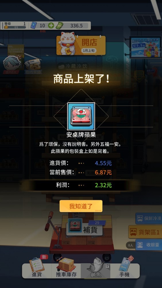 2、每当你完成一阶段的目标,就能解锁更多的新功能,提升店铺的整体水平,让你的商业帝国更具竞争力。