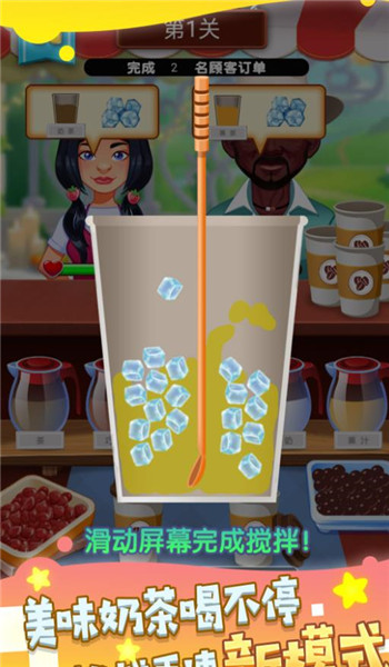 一款奶茶制作趣味经营游戏,游戏中,成为一家奶茶小店的老板,可以亲手利用不同的食材制作出美味可口的奶茶,每天都有大量的客户订单,需要满足客人们的需求,完成交易,获得更多的好评,提升小店的信誉度。