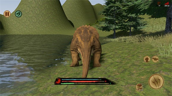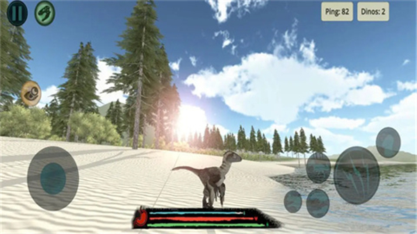 1、首先需要操作左下角的摇杆控制恐龙走到水中;