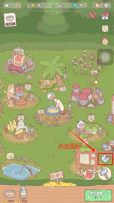 1、点击猫咪,再点击“猫”图标