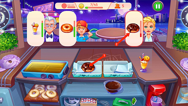 6、接下来只需要按顾客的要求做出相应的食物即可,注意要在耐心条消失前将食物做好,