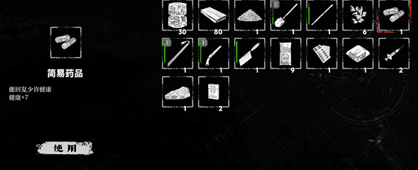 1、各种特殊药品:探索翻垃圾获得,医院地图比较多,布洛芬治疗发烧,胃药治疗胃炎,云南白药治扭伤,安定治失眠,抗生素治各种感染。