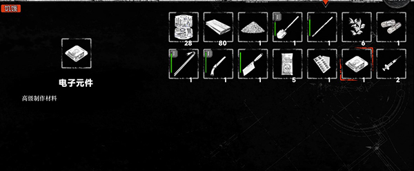 1、电子元件:翻垃圾或者黑市,用来造高级制作台。