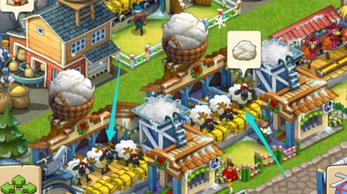 看到蓝色箭头指的牧羊场的小羊羊都是光秃秃的,说明羊毛被剪光了,急需补充饲料。