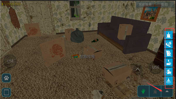 2、成功进入房间后,点击界面右下角的这个图标,可以使用道具来打扫垃圾;