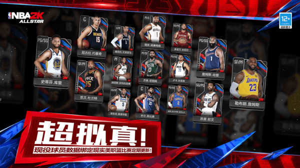 联赛知名球星,如史蒂芬·库里、勒布朗·詹姆斯、凯文·杜兰特、詹姆斯·哈登、凯里·欧文等,玩家可以收集它们,搭配阵型前往各大比赛,不仅能操控众多球星,还能组建梦幻球队。
