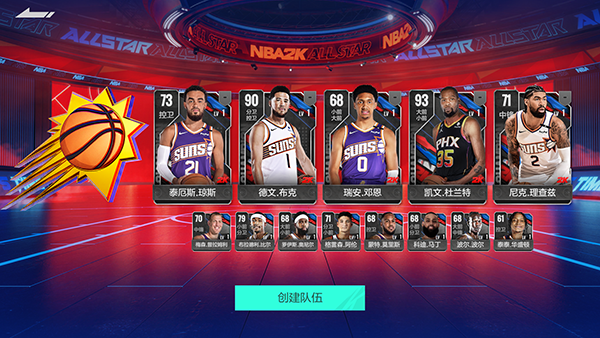 1、进入美职篮全明星游戏后玩家可以自由选择一个球队开始游玩。