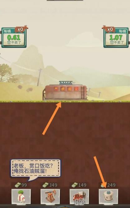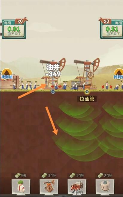 通过卖石油,来赚金币,再购买先进的开采设备。