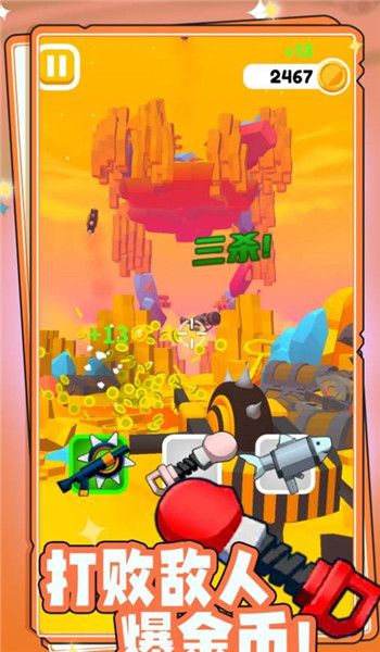 2、击败敌人可触发金币爆落机制,用于强化角色或装备,形成清晰的成长反馈。