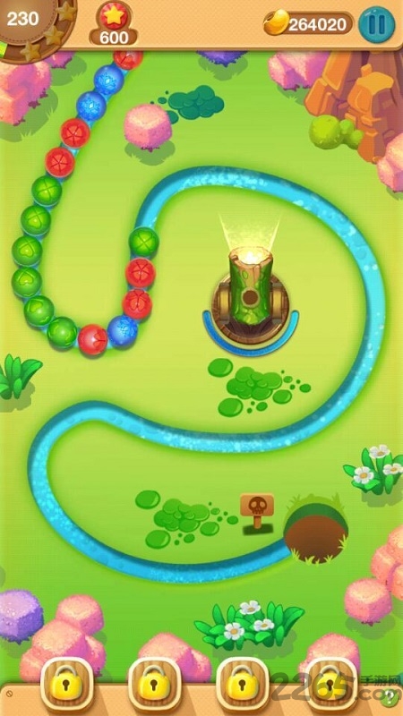 2、沿着轨道去匹配三种或三种以上的同颜色球,阻止轨道上的球掉进吞口洞中;