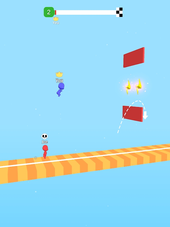 3、大量精彩的爽快冲刺关卡,我们要以更加快速的速度超越对手,拿下对抗跑酷赛的胜利。
