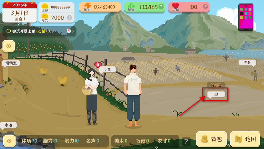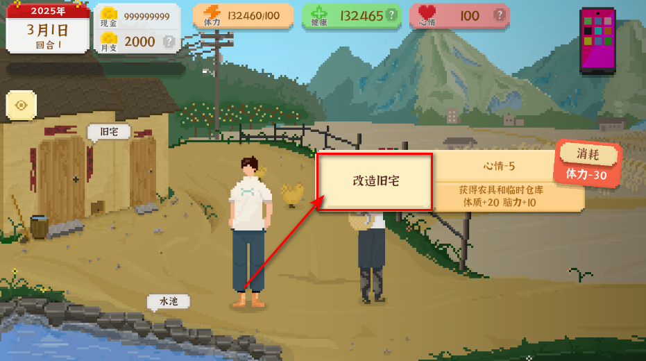 12.旧宅改造完成后,就有农具了,我们就可以开垦家里的地了。