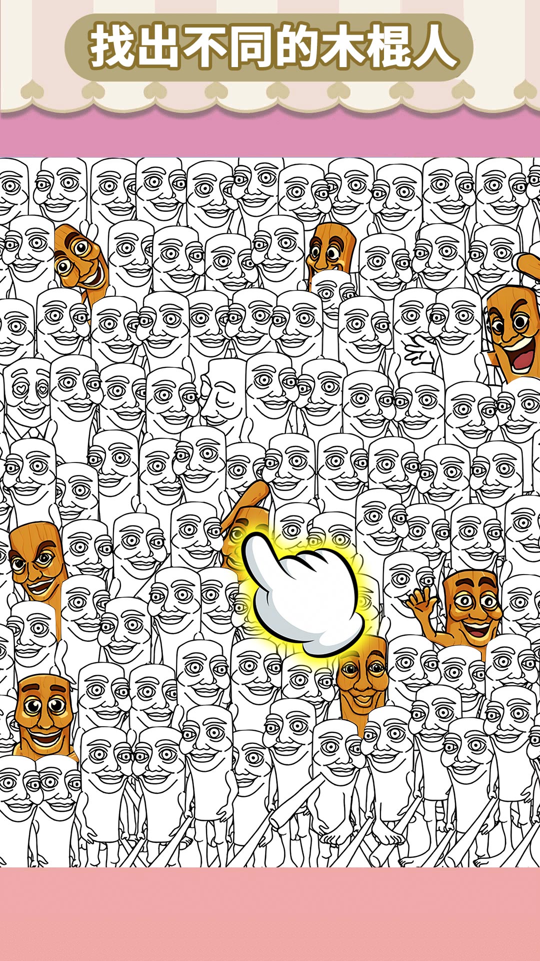 自由探险闯关游戏中的每一个问题,都不能用常规思维去解决,要根据文字提示去寻找解决办法!假如玩家要在一大片黑白的木棍人之中,找到一个不同的木棍人,大家肯定会思考彩色的木棍人是不是正确答案,当你点击之后会发现并不是,那这个时候你就只能一个一个的去尝试了!