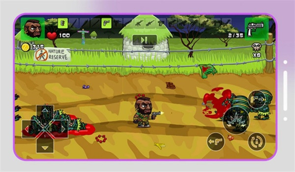 一款融合快节奏射击与策略闯关的横版动作射击游戏。你将化身无畏的正义战士,手持多种热武器,深入敌后执行高危任务。从硝烟弥漫的废墟都市到幽暗复杂的地下基地,每一关都布满陷阱、掩体与智能AI敌人,考验你的走位、瞄准与战术应变。