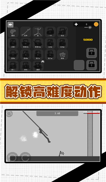 2、解锁炫酷拉风的全新火柴人角色与强力技能,成就火柴人俱乐部里备受瞩目的明星闯关者。