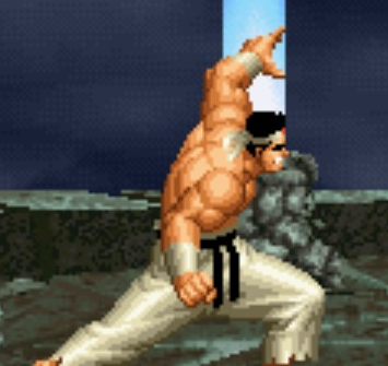 1、超必杀:地狱极乐落,出招方式:(近身)→↘↓↙←→↘↓↙←+轻拳/重拳。 拳皇97的超必杀抓投技有一个特殊性,那就是招式只要出来必定命中,也就是说不会放空招(这一逆天设定从拳皇98起被修正)。地狱极乐落是大门的代表性绝招,是霸气和力量的象征,此招在近身情况下不可防御,不可闪避。