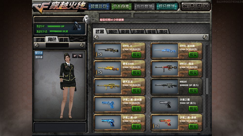 2、可以购买各种角色和枪械,不过貌似使用有次数性质,推出游戏就会扣除一次使用权;
