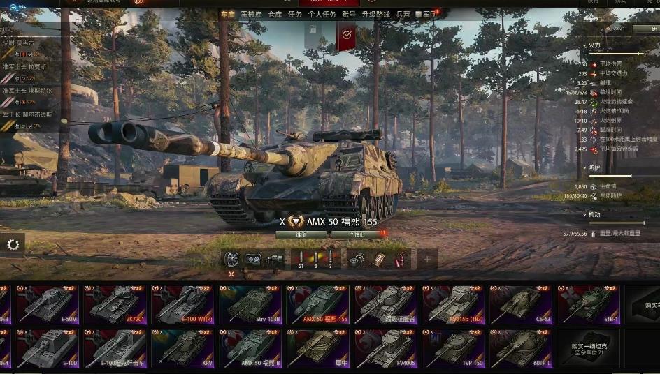 作为法系的顶级重坦,他有着不亚于中坦的超强机动能力,除此之外,等效极高的车体首上和首下也可以骗一骗自以为法系全身都是脆皮的对手。更别提一杆火控精度优秀,闪电战爆发最高最快的(T57:MMP),拥有10°俯角的120炮。这一切让AMX 50 B成为一辆顶级输出型重坦。