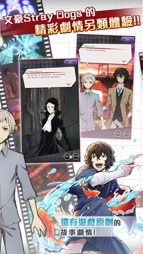 怀有文豪之名的游戏角色集结,无论是号称横滨F4的中岛敦、太宰治、芥川龙之介、中原中也,还是两大组织的头目福泽谕吉、森鸥外,还有泉镜花、江户川乱步、织田作之助、坂口安吾、费奥多尔等各种人气角色,你都有可能召集他们,成为队伍中的一员。