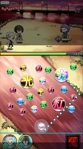 3、游戏玩法十分简单,卡牌上有异能珠和属性珠。用手指从屏幕任意位置拖动,让异能珠去击打属性珠。