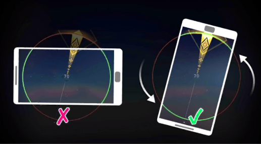 !为了方便旋转操作,我们建议最少抬起手机30度。