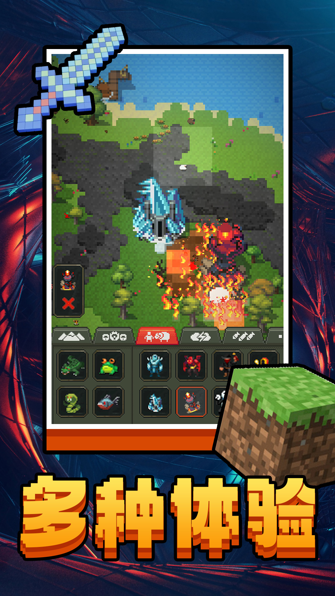 模拟上帝造世界游戏是一款完美色彩的建造模拟游戏,虽然是像素风格的,但是也能够展现出不同场景,山川河流,草原人类,动物凶兽,自然风景都可以完美呈现出来,玩家作为创造者,可以改变这些形态,制造危机,让人类的世界充满了无限可能,不断进化的文明更加有意思。