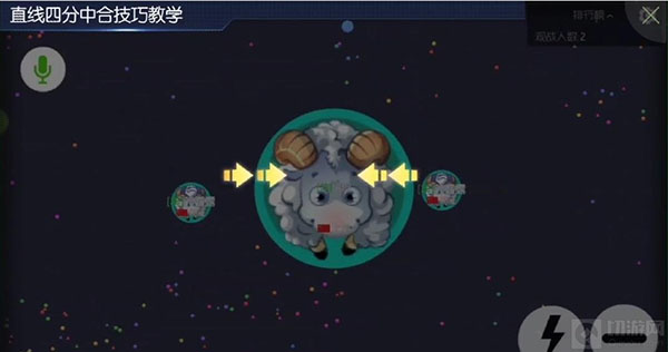 再快速的按下分裂键,进行快速合球。这个时候本体会遗留下一前一后两个小球,如果对手的手速快的话,即便吃掉你前面那一个球,你还有后面那一个球,所以你都不用担心会被淘汰。所以这个是在实战中非常有用的一种技巧。