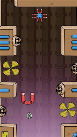 1、控制磁铁的移动,同时玩家需要注意前方障碍物的位置。