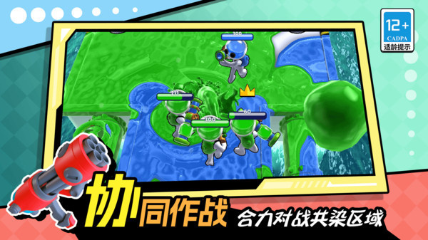 CP大作战游戏是一款烧脑的对战游戏,3人一队和另外两方PK,得靠策略抢占阵地,把对方颜色变成自己的,能躲掩体偷袭,也能组队强攻,游戏操作简单,点屏幕移动、释放技能,讲究配合,赢了超有成就感,玩着超带劲,快来试试。
