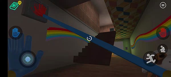 7、当手套收集完成会自动的带入手中,这个时候可以看到在墙的两侧有红色、蓝色的手印,玩家只需要将手套对着相对应的区域即可将房门打开。