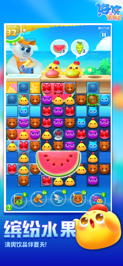海滨消消乐是一款最近非常火爆的休闲益智手游,玩家们可以在海滨消消乐中体验到新版本上线的模式玩法。更快完成任务,连续消除多块方块还能激发特效技能,在这里玩家需要在规定的步数内完成消除任务,超多关卡尽情挑战,相信大部分玩家都不会陌生,随时随地想玩就玩,随着游戏的深入难度会逐渐增加,玩家们可以邀请好友一起加入到海滨消消乐当中。