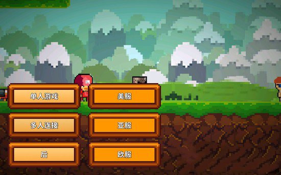 1、进入游戏之后,我们选择“开始”,然后会出现单人游戏还是多人连接,点击“多人连接”按钮,就会出现美服、亚服、欧服,以亚服为例。