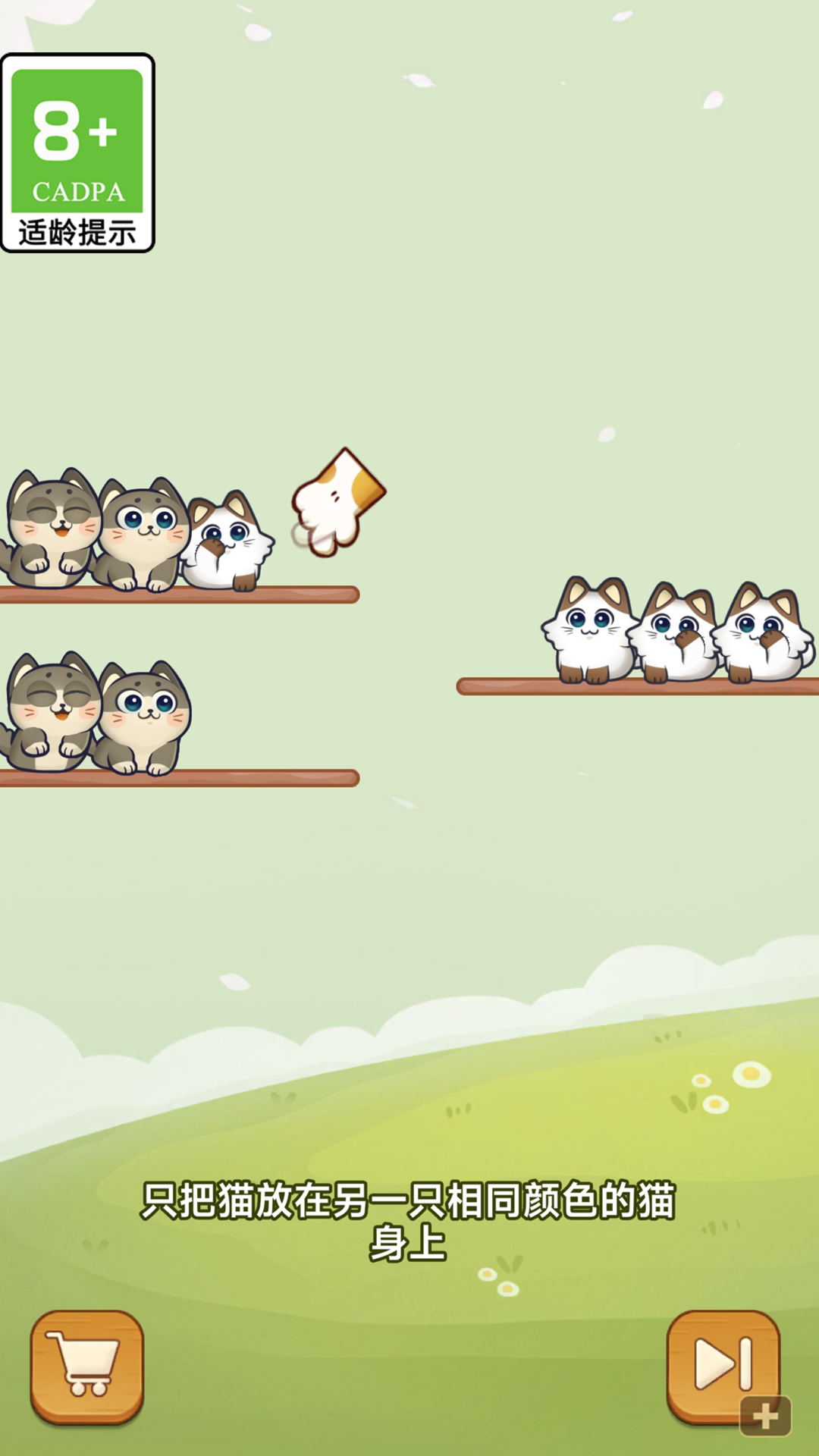 超萌的小猫咪一排排的站在不同的平台上面,玩家的任务是把相同颜色的小猫咪放在一起,所以要挪动这些可爱的小猫,当你点击小猫咪的时候,它还会发出动听的声音,跟玩家进行亲密的互动!猫王大作战游戏的规则就是挪动小猫咪的过程中,被移动的小猫咪,只能和自己颜色一样的小猫待在一起。