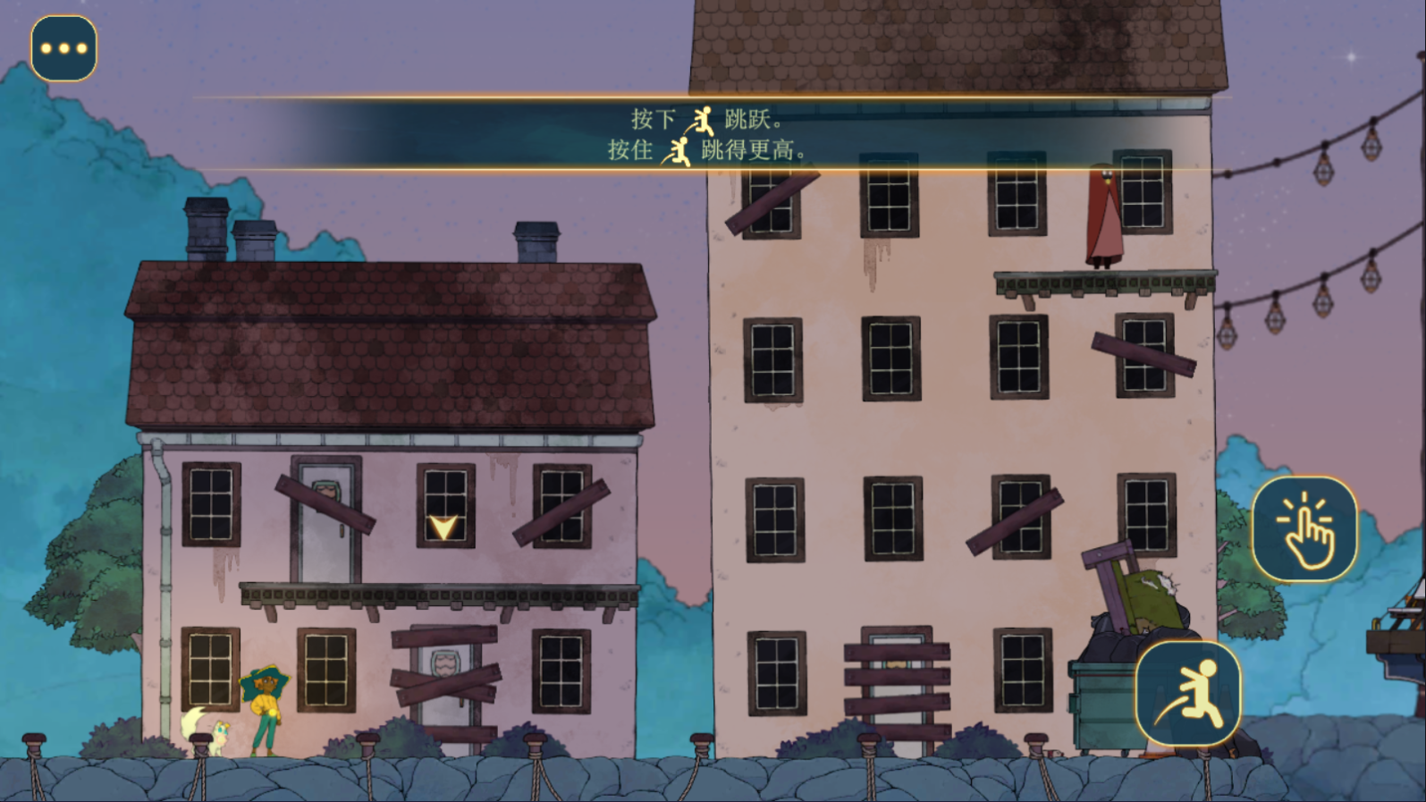 2、按下【跳跃】图标跳一下,按住【跳跃】图标跳的更高
