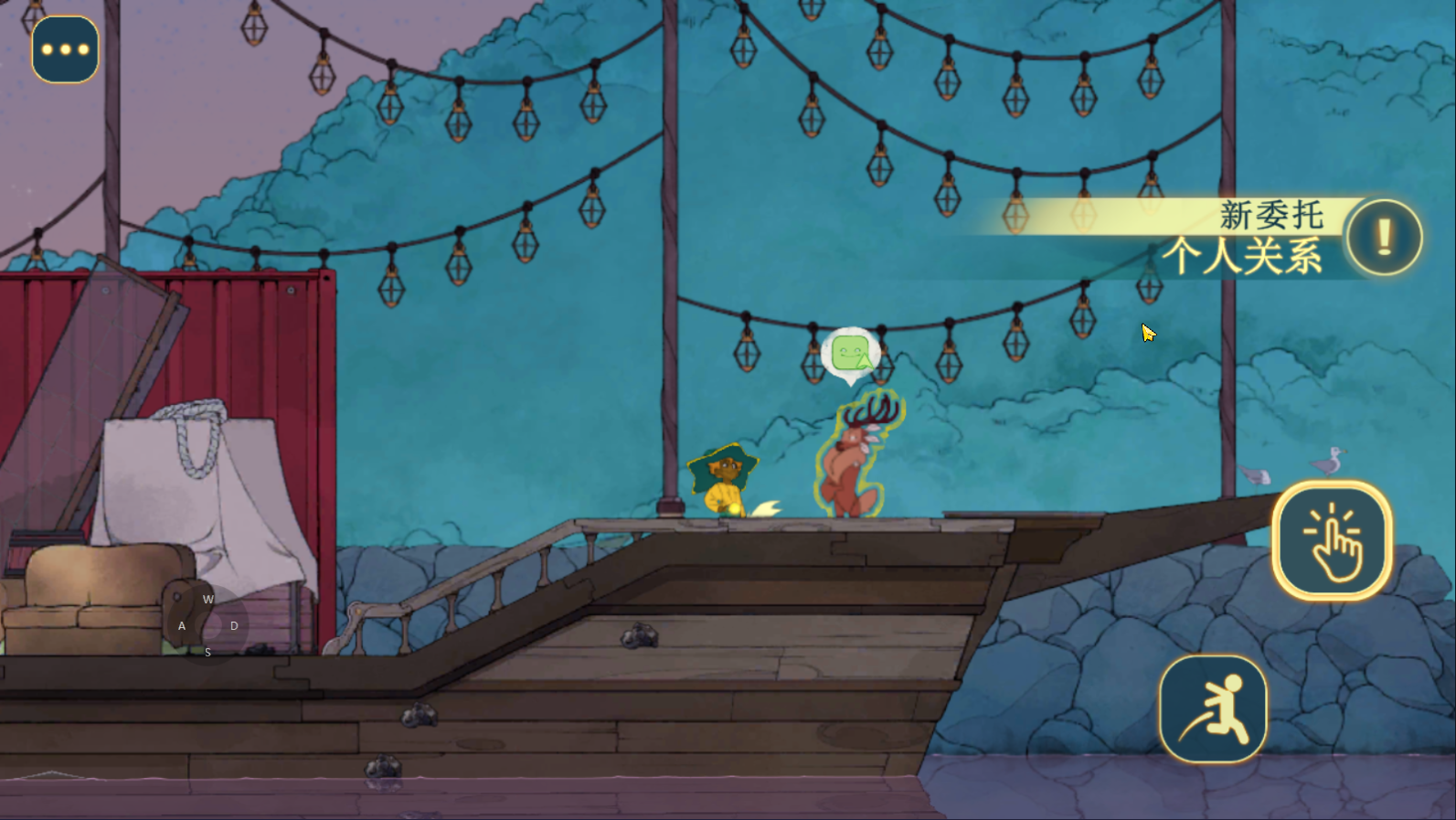 4、你和他的关系现在出现了变化,你是他的委托人,点击角色头上的绿色表情包可进行与他互动,比如拥抱