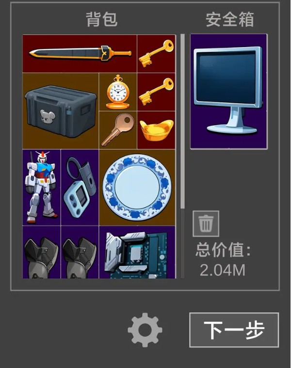 6、搜索到的物品可以选择拾取到背包中,后续遇到更好的物品可以扔掉背包中的物品进行更换;