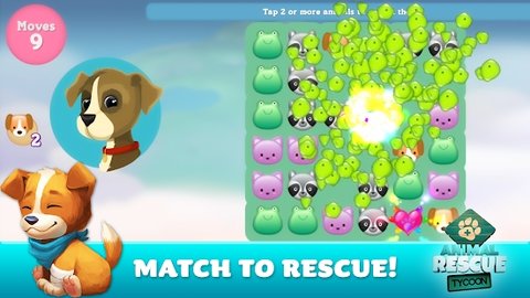 Animal Rescue Tycoon游戏是一款适合各个年龄段玩家的休闲益智类游戏。游戏中玩家需要通过消除相同的动物来获得积分。直到获取足够多的积分才能够解救当前被困的小动物。当玩家解救成功后,这些小动物就会变成玩家的宠物。玩家能够体验与各种小动物互动的乐趣。