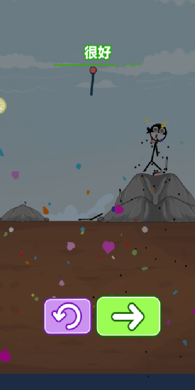 2、当你成功的将火柴人粉碎之后,会有很好的字样展示在屏幕上,你也可以解锁下一关。
