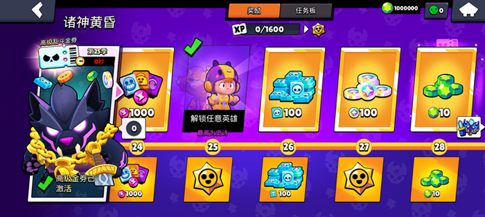 5、荣誉之路中奖杯达到300,可以解锁金券乱斗中的任务板,完成任务能获得更多的奖章。