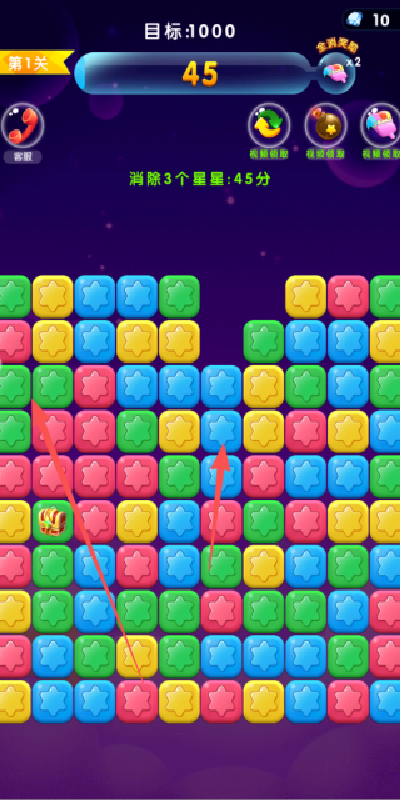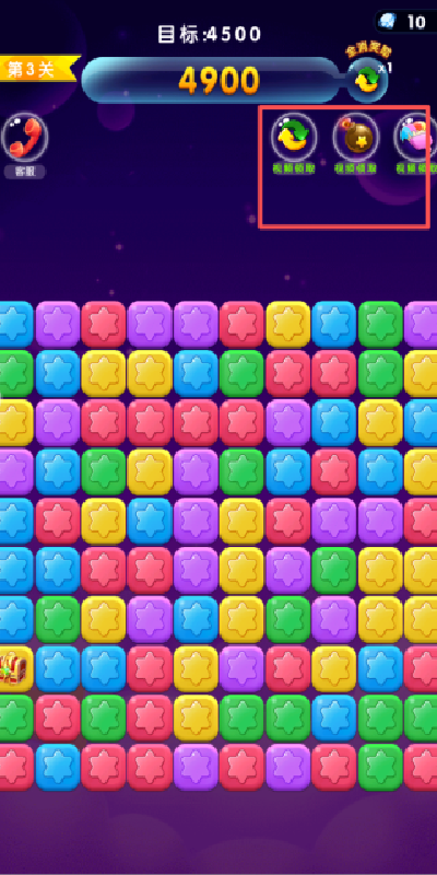 3、融入多样化的道具系统,如能消除整行或整列的强力道具、可变换方块颜色的神奇道具去合理运用。