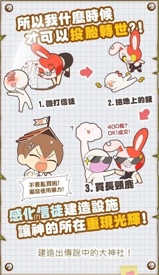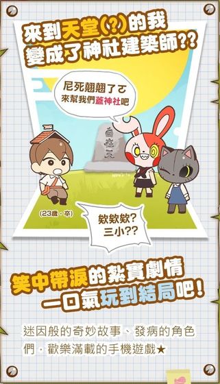 病病神社建造中是一款剧情向的经营收集题材的单机模拟游戏,在这里大家将和熟悉的兔兔以及猫猫们开启属于你们的故事。游戏中玩家就是要建设好这个冰冰神社,因此玩家你的日常就是招募这些萌萌的小可爱们,然后在剧情的带领下和它们进行互动,不断完整和收集更多的猫猫以及兔兔来到你的神社。喜欢的玩家快来体验吧!