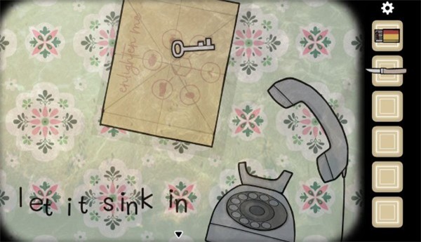 4、用小刀划开有电话的桌子上放着的信封,打开里面的纸,纸上有一行“enlighten me”;