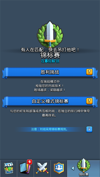 7、最后就是锦标赛了,8级可以解锁参加,在独立的排行榜中争夺最高排名。
