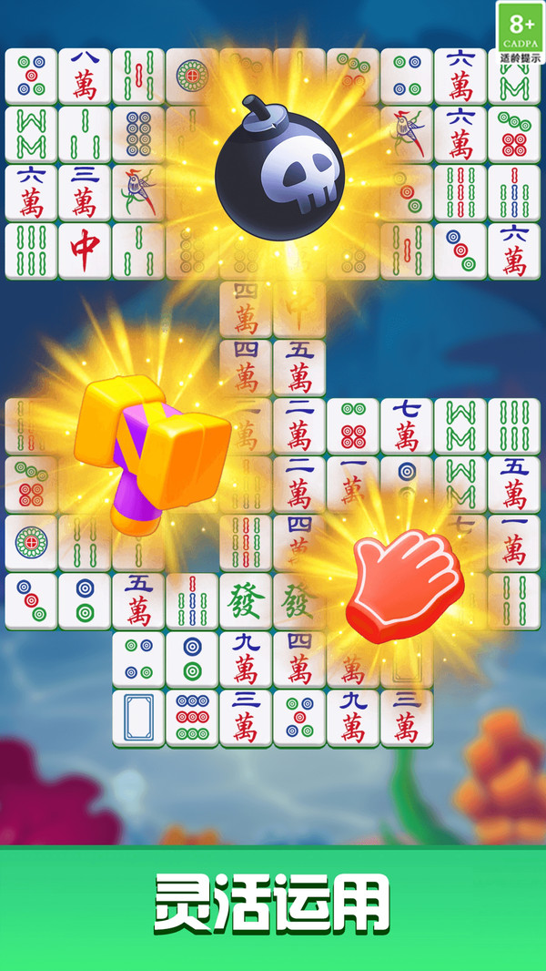 1. 这款消除游戏以麻将和解谜为主题,玩家需要将麻将牌组合成对子来得分;