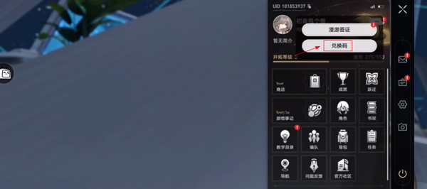 2、然后点击右侧三个点,找到兑换码;