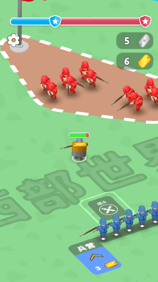 资源管理和军队建设:游戏中可以积累资源,用于招募更多的兵力,包括但不限于坦克、火箭炮和飞机等作战单位,不断扩大军事实力,提升战斗力。