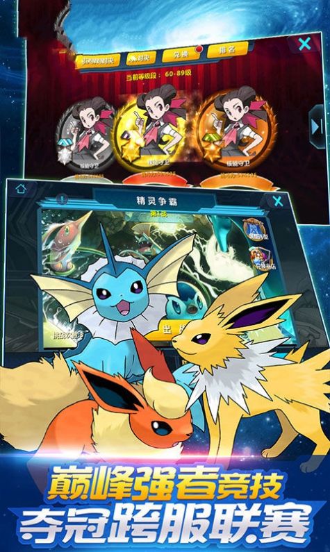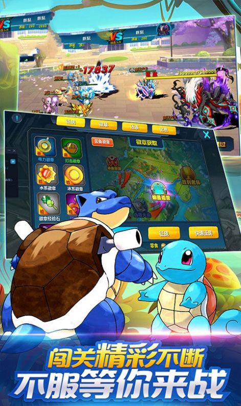 3、轻松挑战闯关冒险,掌握更多灵活的玩法,点击精灵球进行对战!