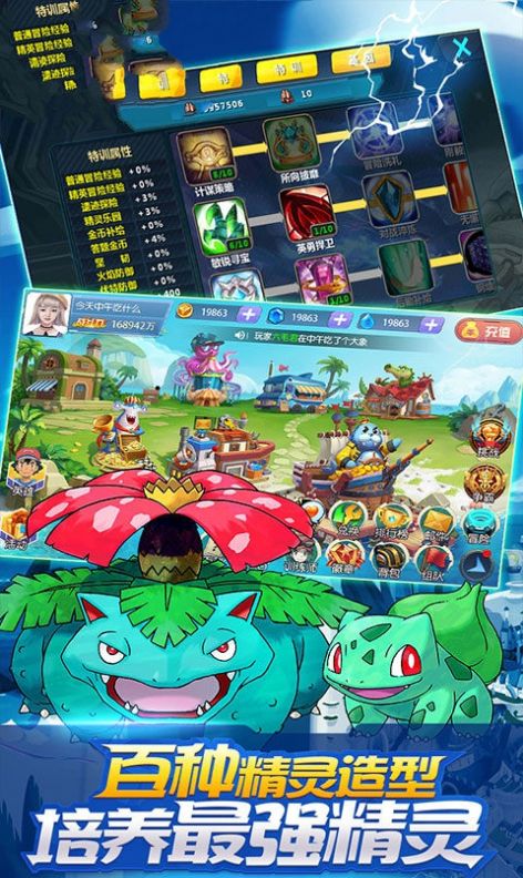 1、成为强大的训练家,培养你的小精灵宠物,完成进化提升的任务;